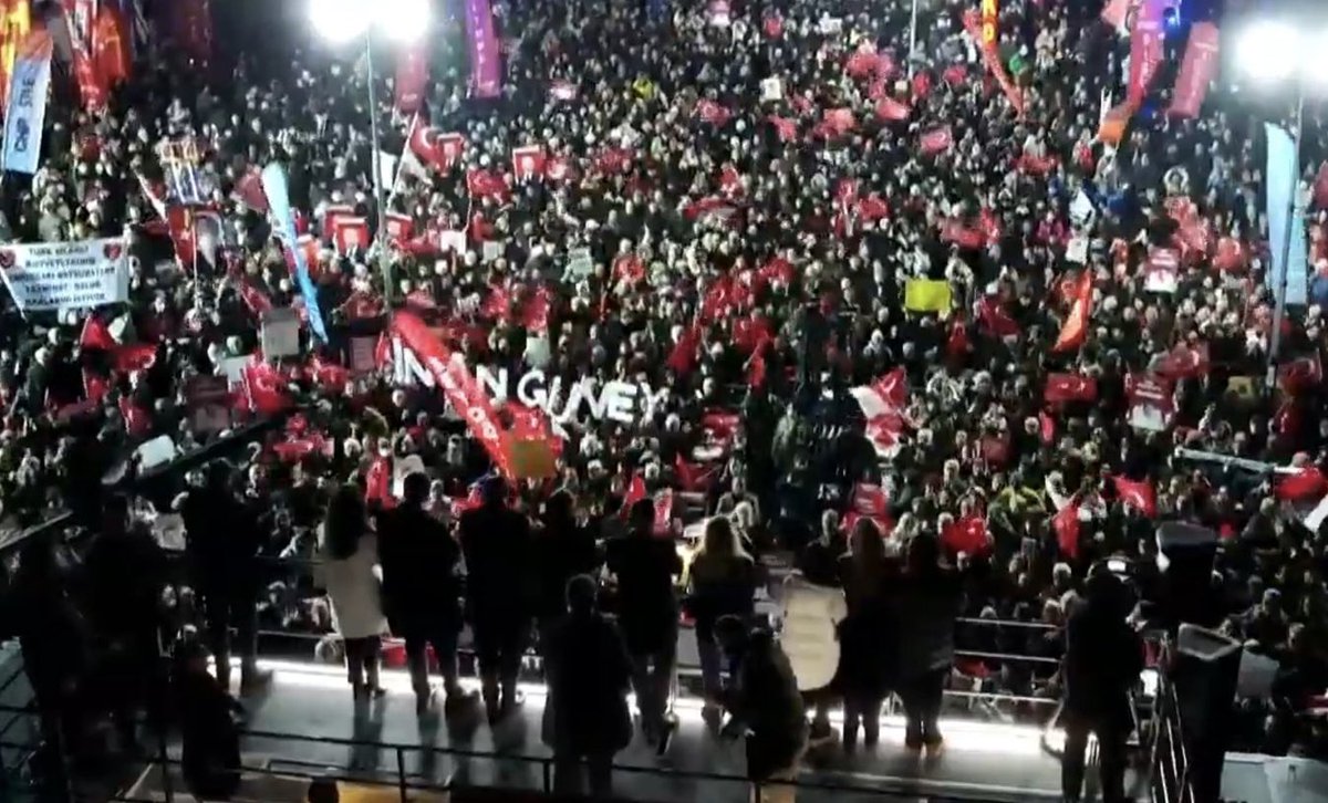 “Millet İradesine Sahip Çıkıyor” mitinginin bu hafta İstanbul’daki adresi Beşiktaş olurken, soğuk havaya rağmen binler buluştu. Beşiktaş Belediyesi Başkanı Rıza Akpolat ve CHP’nin Cumhurbaşkanı Adayı Ekrem İmamoğlu’nun Silivri’den gönderdiği mektuplar okundu. İBB aleyhine asılan posterlere tepki gösteren CHP Genel Başkanı Özgür Özel, geçmişte de benzer “iftira kampanyaları” yapıldığını ifade etti ve yaklaşık 1 milyon oy farkıyla kazanılan seçimi hatırlatarak “Osmanlı tokadı atacaklardı, demokrasi tokadını yediler” dedi.